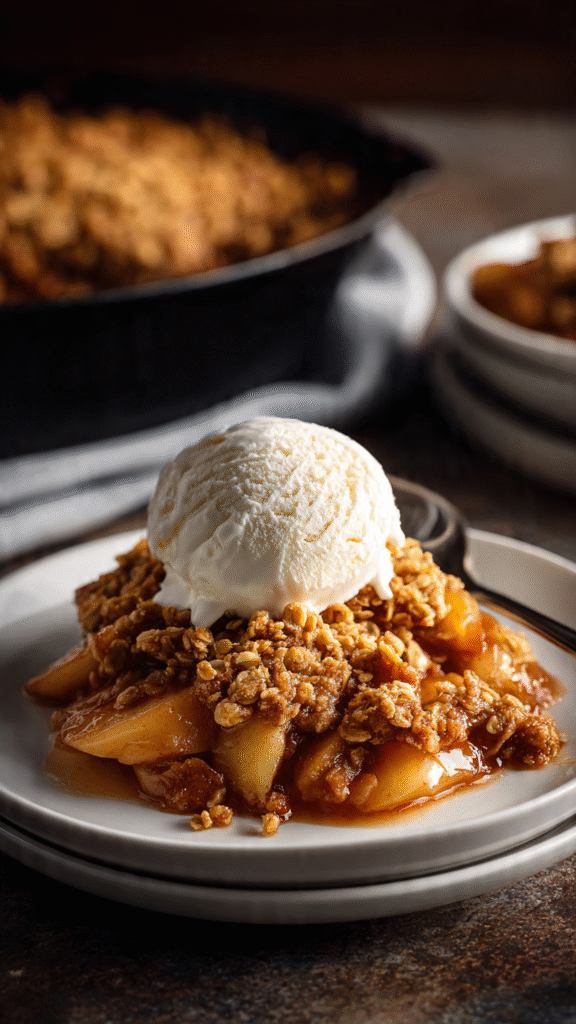 If you want an easier alternative to pie, apple crisp is a winner. Tender cinnamon apples topped with a crunchy oat crumble create a cozy, crowd-pleasing dessert that pairs beautifully with vanilla ice cream.