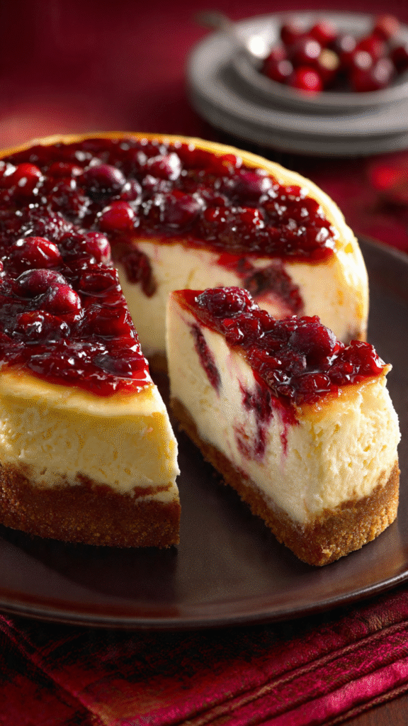 Combine sweet and tart flavors with a creamy cranberry swirl cheesecake. The vibrant cranberry topping adds a festive touch and balances the richness of the filling.
