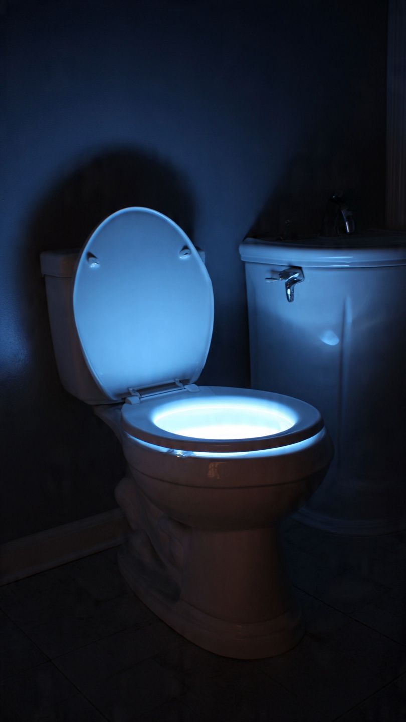 This small light turns on when the toilet seat is lifted at night.