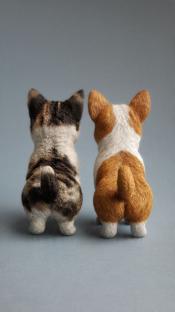 Tiny cat and dog rear ends that stick to the refrigerator.